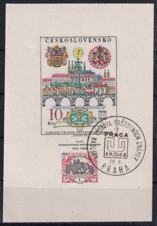 • ruční černé, pamětní razítko: PRAHA/28.6. 1968/SVĚTOVÁ VÝSTAVA POŠTOVNÍCH ZNÁMEK PRAGA 1968