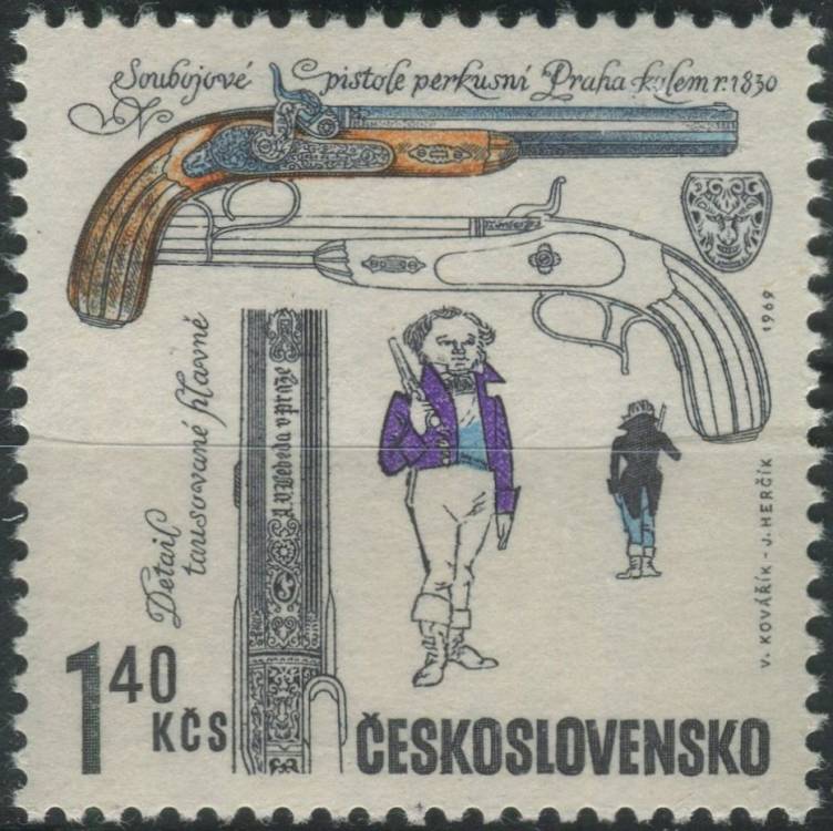 1969, ČSR II, 1748, Historické palné zbraně: Pistole soubojová, Praha ∗∗