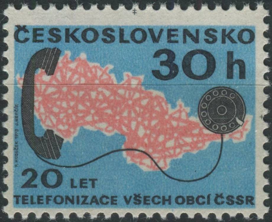 1973, ČSR II, 2028VV, Výročí spojů: Telefonní sluchátko ∗∗