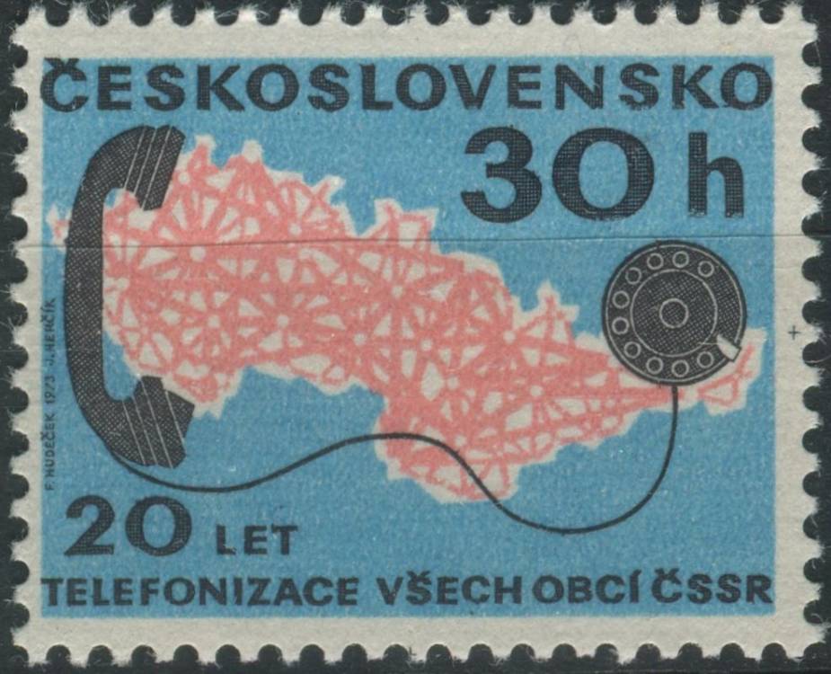 1973, ČSR II, 2028VV, Výročí spojů: Telefonní sluchátko ∗∗