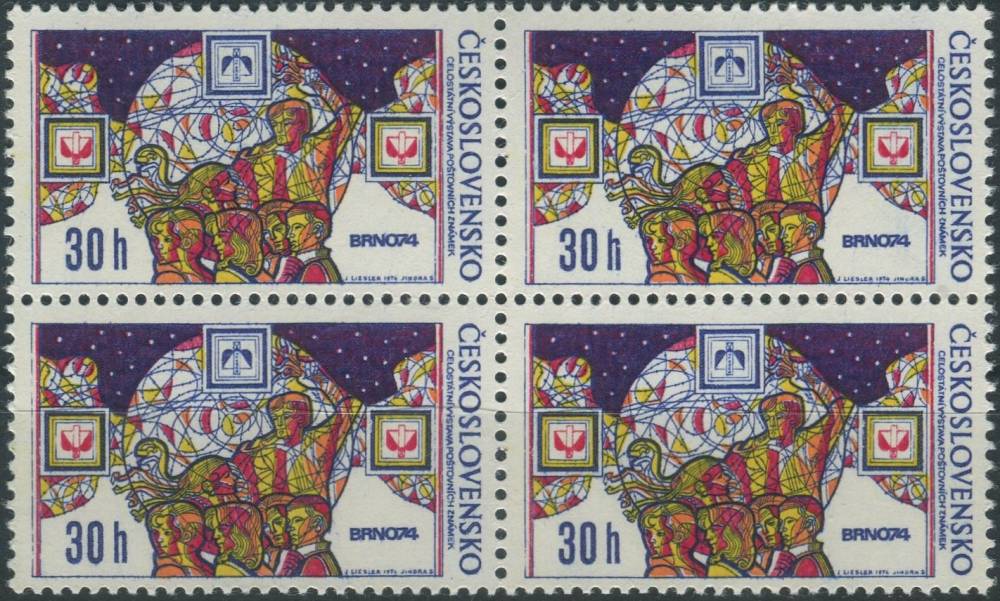1974, ČSR II, 2091VV, Celostátní výstava poštovních známek BRNO 1974: Zeměkoule, návštěvníci a emblémy ∗∗ ⊞