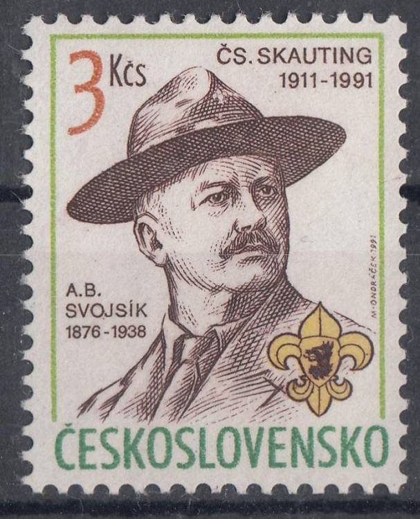 1991, ČSR II, 2966, 80. výročí čs. skautingu a 110. výročí narození A.B.Svojsíka, **