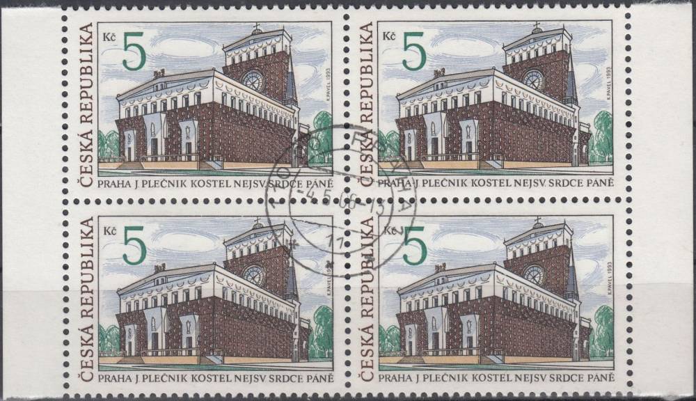 1993, Česko, 0006, Krásy naší vlasti: Kostel Nejsvětějšího srdce Páně ⊙ 4blok