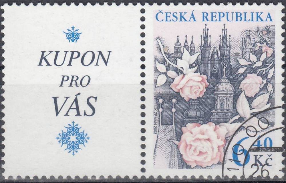 2003, Česko, 0354KL, Blahopřejná známka: Růže nad Prahou (I) ⊙