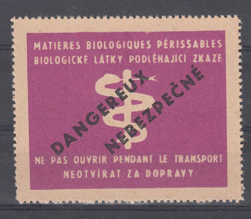 1967, ČSR II, poštovní zálepka, Přetisk DANGEREUX NEBEZPEČNÉ, **