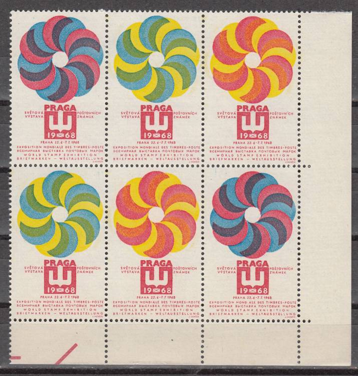 1968, ČSR II, zálepky, Světová výstava poštovních známek PRAGA 1968, 6blok, r, **