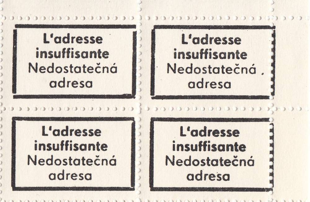 1974, ČSR II, poštovní zálepka, Nedostatečná adresa, PH4blok, r, **